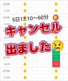 5日、13:10〜60分キャンセルがでました? |