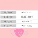 こんばんは! ふうかです 今日もありがとうございました〜 めちゃくちゃ楽しかったです? 次の予定です 4/25(土) 10:00-19:00 4/29(水) 10:00-19:00 GW前で忙しいかな? 良かったら遊びに来てください! GWのシフトも決まったらまたお知らせしますね? 来週天気悪いからみんなお気を付けて? ではまた4/25にお会いしましょう〜 ふうか ? |